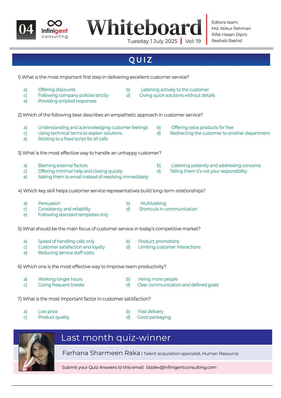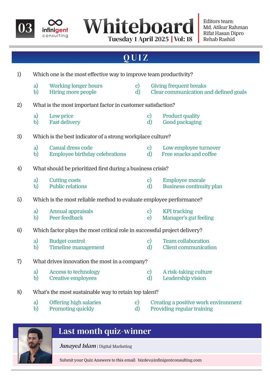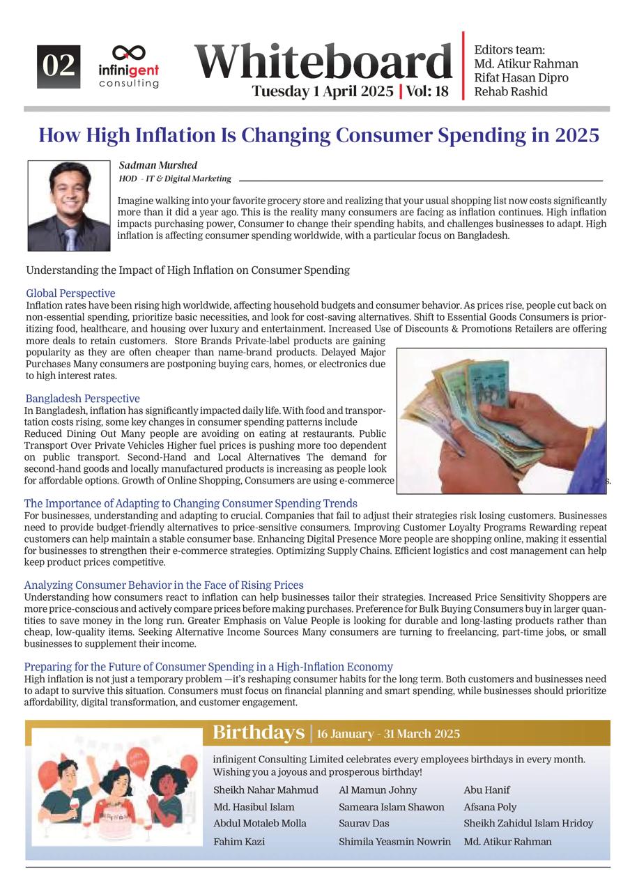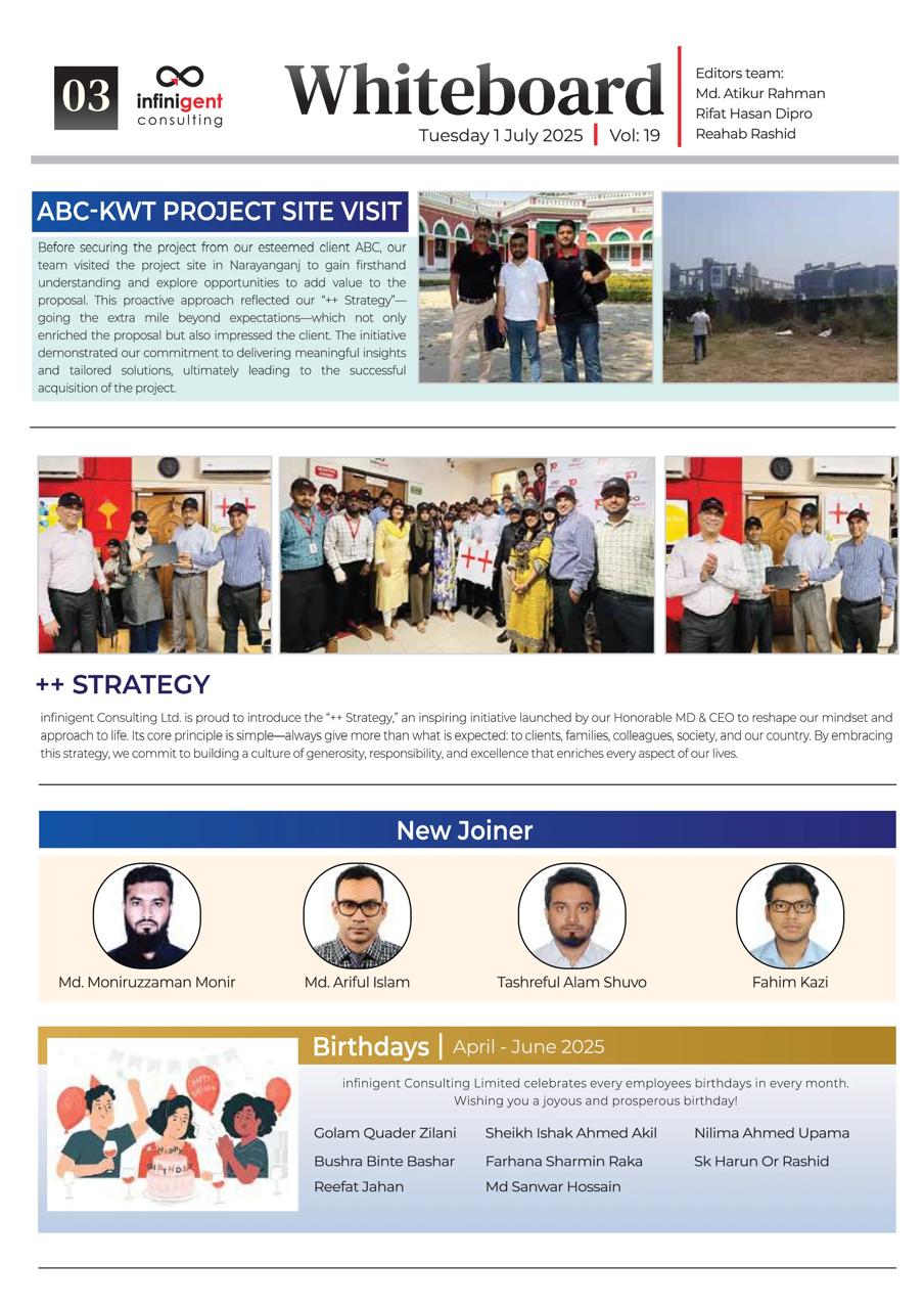 We, at infinigent Consulting Ltd., will publish our whiteboard on Thursday, April 1, 2025. This whiteboard will share important updates and information with you.